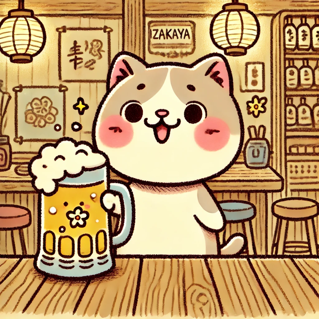 ビールを飲むネコ | ねこイラ フリーイラスト